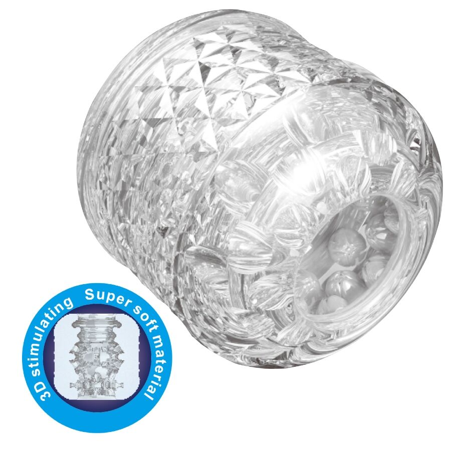 Elegante masturbador manual en color Transparente de calidad inigualable que puede ofrecer una estimulación del pene altamente irresistible.